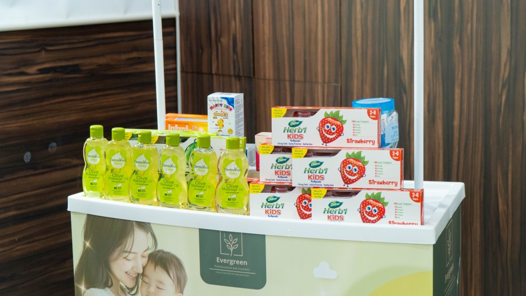 Evergreen không chỉ mang đến kiến thức, mà còn gửi tặng các mẹ những phần quà đầy tâm huyết. Các phần quà bao gồm combo sản phẩm DermoViva baby Olive, voucher ưu đãi cho các đơn hàng sản phẩm Dabur Red và Amla Kids, cùng những cẩm nang hướng dẫn chăm sóc bé tại nhà. Sự chu đáo này nhận được nhiều lời khen từ các mẹ tham dự.