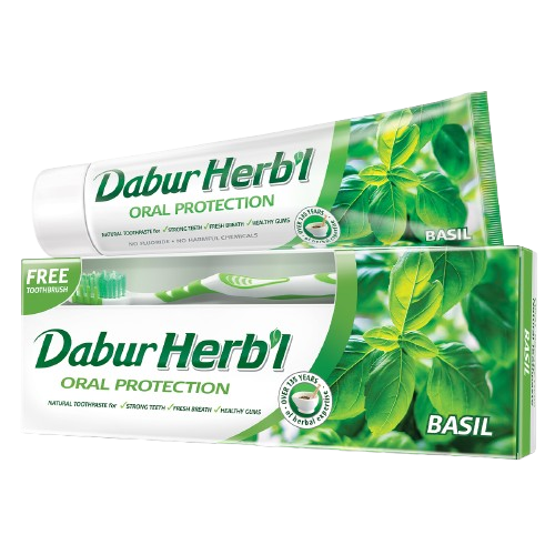 Dabur Herb’l kết hợp các thành phần thiên nhiên giúp hơi thở thơm mát, chăm sóc răng miệng từ thảo dược, không hóa chất. Giúp hơi thở thơm mát với thành phần thảo dược, không hóa chất độc hại, không fluoride.