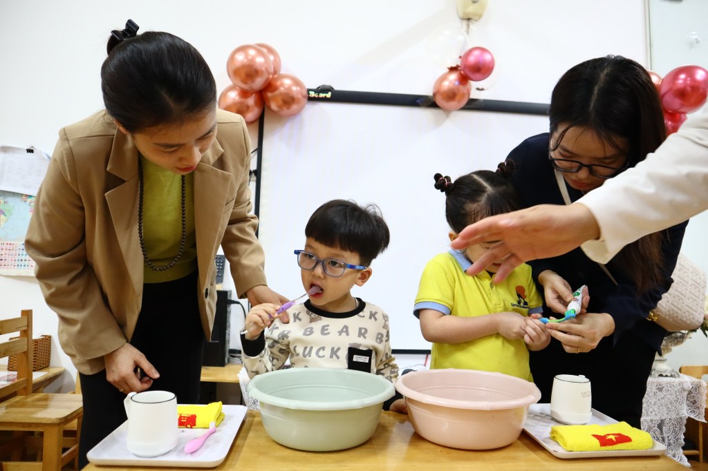 Bên cạnh đó, các mẹ và bé còn được trải nghiệm hoạt động: Massage kết nối mẹ và bé tăng cường tình cảm yêu thương; Hướng dẫn rửa tay và đánh răng đúng chuẩn, từ đó hình thành thói quen vệ sinh khoa học từ nhỏ.