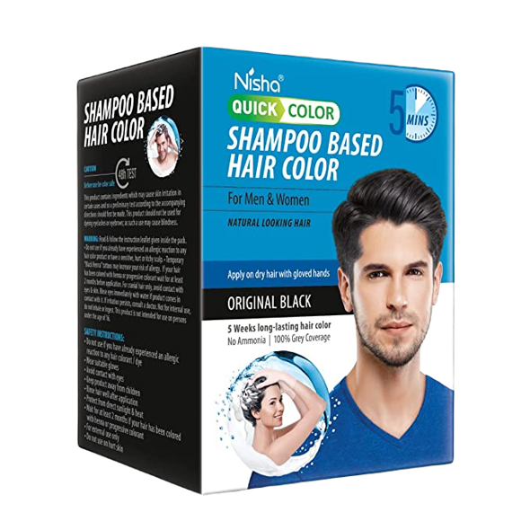 Dầu Gội Nhuộm Dưỡng Tóc Nhanh 5 Phút Nisha Đen – Hộp 8 Gói